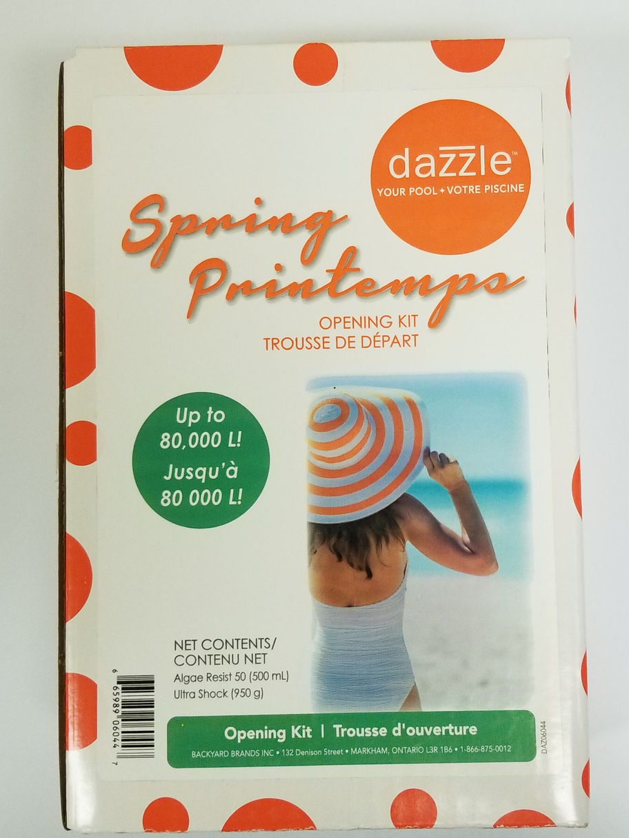 - Combines the following products in a more economical opening kit for in-ground pools: Dazzle™ Algae Resist 50 (500mL) for algae control and Dazzle™ Ultra Shock (950g) for spring oxidation and chlorination.