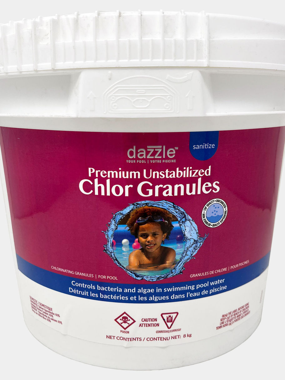 - A premium, quick-dissolving, unstabilized granular chlorine for daily, hand-feed application to control algae and bacteria in swimming pool water.